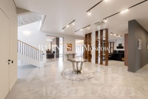 1-ый уровень: холл, просторная гостиная с камином на 2 стороны, санузел, столовая, открытая кухня, выход на террасу 20 м с зоной барбекю, кабинет, гостевая спальня, СПА-зона: переливной бассейн 15х5 м., сауна, зона отдыха, тренажерный зал, санузел;