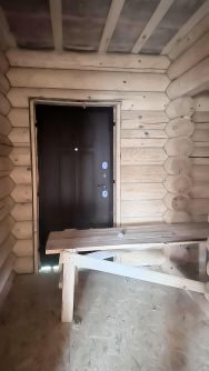 Участок 12 соток прямоугольной формы, сухой, огорожен. Сделана калитка и ворота для въезда автомобиля. На участке 2-х этажный дом 200 кв. м2024 года постройки. Дом построен из оцилиндрованного бревна 260 мм. Планировка в доме: на 1-м этаже: прихожая, бойлерная, с\у и большая кухня- гостиная; на 2-м этаже: четыре спальни и с\у. Внутри дама: вставлены окна, сделан пол (черновой), утеплен.