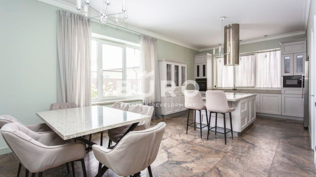 Загородный одноэтажный дом с 5-ю спальнями, общей площадью 255 м², представлен "под ключ" и расположен на видовом участке 17.5 соток.