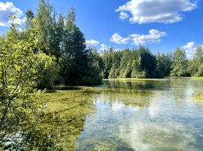 Лес и естественный водоём обеспечивают чистый воздух и доступ к природе. Инфраструктура поселка уже формируется.