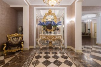 Шторы в доме сшиты из шёлка и шелкового бархата и привезены из Италии. Вся мебель в доме выполнена ведущими производителями из Италии и Америки. Диваны представлены эксклюзивным брендом Zanabony, а кухня итальянским брендом Ca dOro. Зеркала привезены из Венеции, картины из Франции, а вазы и предметы декора из Марокко. Антикварным достоянием дома являются камин из травертина и швейцарский гобелен над ним XIX века.