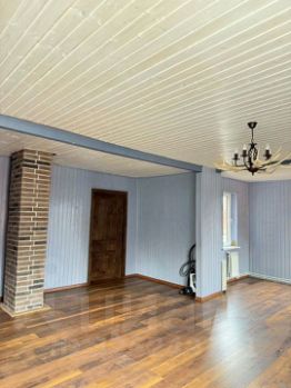 Большой участок 18 соток с красивым домом на краю дачного посёлка, в доме проживает собственница круглогодично также есть соседи кто проживает круглогодично. Дорога к посёлку частица, общие ворота на въезде, охрана.