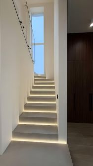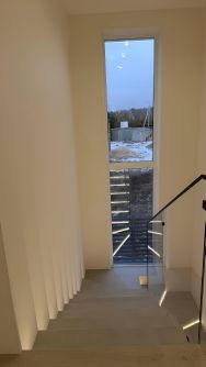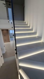 Интерьер. Дизайнерская чистовая отделка: керамогранит на первом этаже, кварцвинил на втором.
