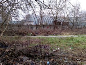 Участок трапецевидный. С одной стороны- бетонный забор. Не большое предприятие, обработка древесины. Не шумно .