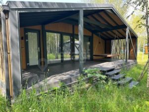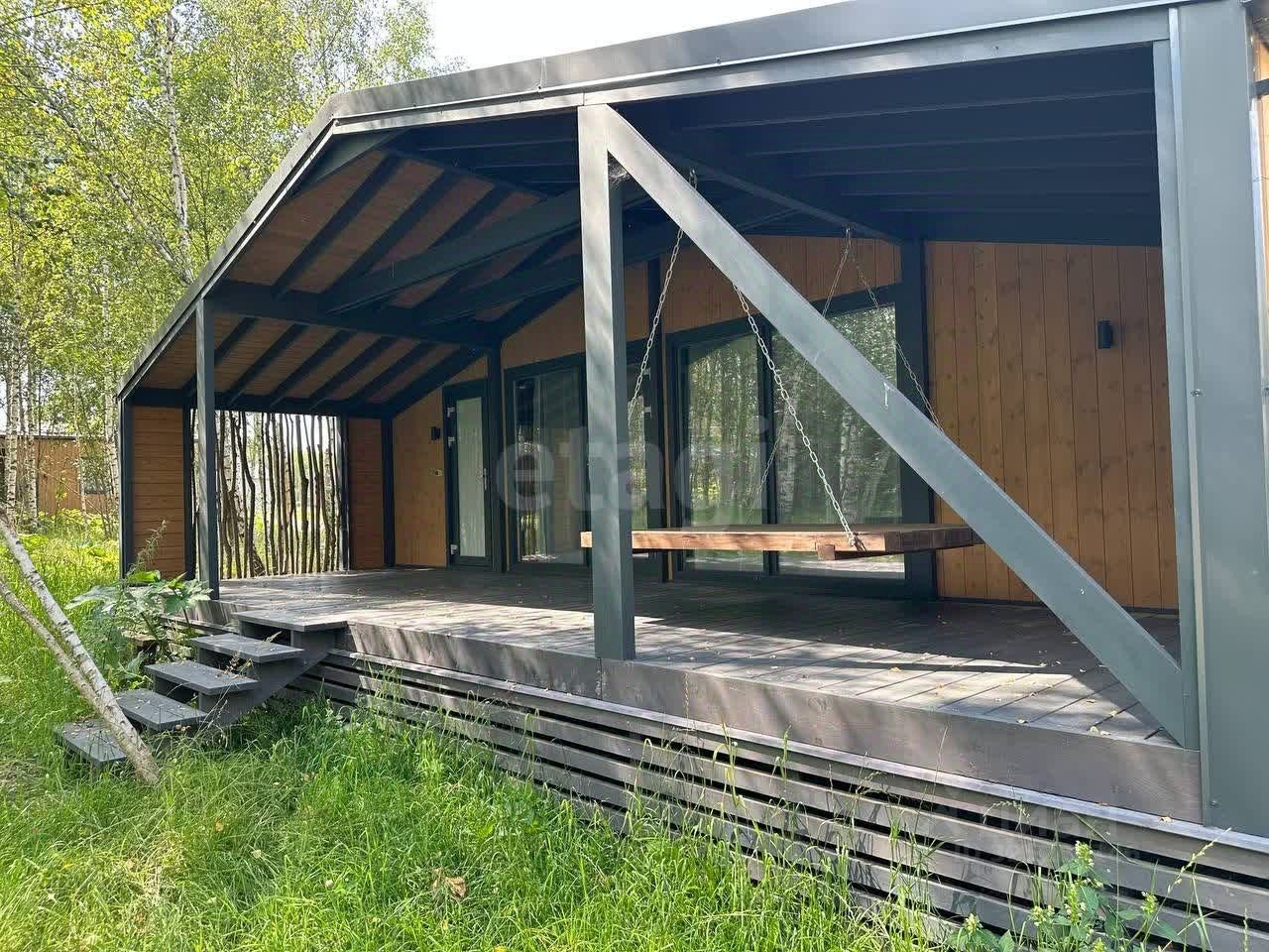 Ключевым преимуществом является готовая инфраструктура для коммерческого использования: объект уже приносит стабильный пассивный доход, его ежемесячная арендная плата составляет 100 000 рублей. Планировка функциональна и включает просторную общую зону с раскладным диваном и панорамным остеклением, отдельную большую парную и две компактные комнаты, конфигурацию которых можно адаптировать под конкретные задачи. Кухонная зона в настоящее время не оборудована, что позволяет новому владельцу установить модуль по своему вкусу и бюджету. Дополняет дом большая веранда для отдыха на свежем воздухе.