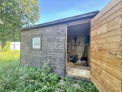 На участке установлена бытовка, банный домик, не достроен гараж на 2а автомобиля.