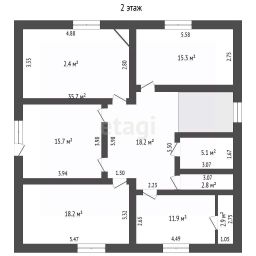 Помещение на первом этаже площадью 65 кв. м представляет собой свободное пространство для зонирования под гостиную, кабинет или дополнительную спальню, здесь же расположены кухня-столовая, холл, санузел и бойлерная. На втором этаже — четыре спальни, просторный холл, большая гардеробная и санузел.