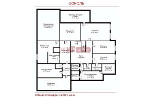 Цоколь: постирочная, кладовая для белья, котельная, чемоданная, холодильная комната, кладовая, винная комната, с/у, спальня с с/у, спальня, тренажерный зал, кинозал.