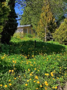 Яблоня, кусты смородины, туи, голубая ель, обычная ель, кедр, дуб, другие насаждения (участок ранее принадлежал селикционеру)