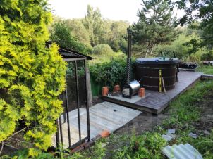На участке: домик (под снос или ремонт с внешней стороны), баня, купель, сарай, туалет, 2 дровника.