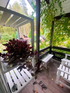 Участок 6 соток благоустроен и озеленён, что создаёт уютную атмосферу и способствует комфортному проживанию. Огороженным 3D забором на винтовых сваях. На участке имеются декоративные и плодово-ягодные растения, в том числе яблони, сливы, алыча, ирга, смородина, жимолость, голубика, малина, крыжовник. Все растения сортовые или гибридные, районированные, хорошо плодоносят. Много хвойников.