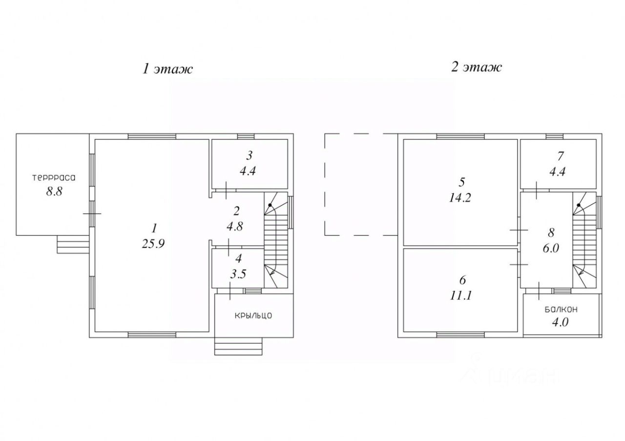 Коттедж представляет собой двухэтажное каркасное здание, возведённое на свайно-винтовом фундаменте, что гарантирует долговечность и устойчивость конструкции. Внутренние стены утеплены до 200 мм, полы — до 200 мм, кровля — до 250 мм, что обеспечивает высокий уровень тепло- и звукоизоляции. Электроснабжение осуществляется от сети с мощностью 15 кВт, договор заключён с Мосэнерго.
