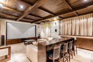 Внутреннее пространство организовано так, чтобы дом был одинаково комфортен для повседневной жизни и приема гостей. Здесь предусмотрен собственный кинотеатр для уютных вечеров, полноценная SPA-зона с тренажерным залом, сауной и джакузи, просторный холл, гостиная с камином, столовая с выходом на веранду, функциональная кухня, кабинет и приватные спальни. Планировка логична и сбалансирована: первый этаж идеально подходит для общественной жизни, второй — для семейного уединения, а цокольный уровень делает дом полностью автономным, объединяя зоны отдыха и технические помещения.