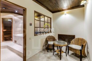 Основной дом площадью 577 кв.м. дополнен отдельностоящим SPA-комплексом с бассейном площадью 382 кв.м., формируя единое пространство для отдыха, восстановления и активного образа жизни. В доме выполнена свежая отделка с использованием высококачественных материалов, а мебель, техника и предметы интерьера от ведущих премиальных брендов подчеркивают уровень объекта и продуманность каждой детали.