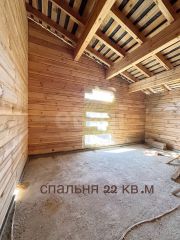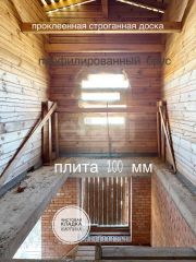 Второй этаж из профилированного бруса 180*150мм напилен из леса зимней заготовки. Стропильная система из сухой строганной доски 195*45мм , в местах соединения проклеена клеем по дереву.