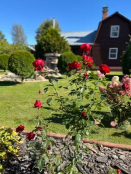Просто изумичельные розы и гортензия. Выполнен ландшафтный дизайн на территории участка.