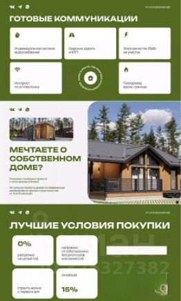 Расположен в экологически чистом Дмитровском районе московской области, в 56 км от Мкад. Вы будете жить в окружении живописного леса, вдали от городской суеты, но со всей необходимой инфраструктурой для комфортной загородной жизни. Магазины и Пвз, школа, сад в 5 минутах езды, вся необходимая инфраструктура ТЦ, больницы, кафе, стадионы в 15 минутах езды в г. Дмитров. Есть участки с выходом в лес, на возвышенности, в окружении и без деревьев. Свет 15квт на участок, сделана хорошая дорога, газ по границе участка (подключение газа при 70% застройки поселка), оптоволоконный интернет. Поселок активно строится, более 50 домов живут круглогодично, на въезде шлагбаум. Прописка. Есть вариант покупки земли в рассрочку без % до 18 месяцев. Скидка при оплате наличными до 15%. Все документы готовы.