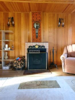 Дом оптимальной и просторной планировки, внутри отделан деревом (бессучковой евровагонкой по спец-заказу). На первом этаже дома находится уютный коридор, который встречает гостей теплым светом и атмосферой домашнего уюта. Слева от коридора расположена кухня, в которой есть вся необходимая техника для Вашего удобства. Из кухни открывается дверь в небольшую комнату, которая может служить как уютным кабинетом, так и комнатой для отдыха. Также на первом этаже расположена просторная комната с камином. На втором этаже светлая комната с выходом на балкон, в котором можно организовать уютную зону для отдыха и любоваться видом на лес.