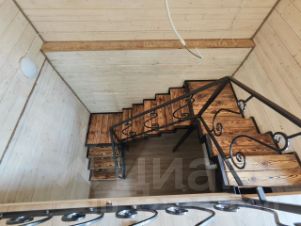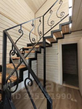 B Доме два этажa, нa второй этаж ведет желeзнaя леcтницa с деревянными cтупенькaми.