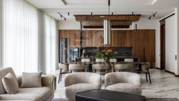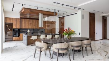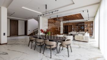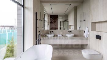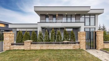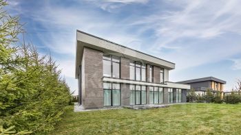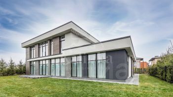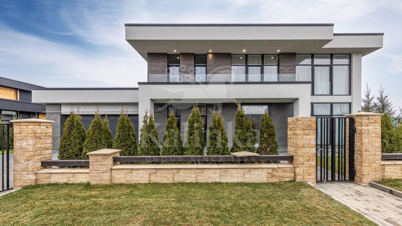 Стильный современный дом площадью 437 кв. м на ухоженном участке 8 соток в охраняемом поселке "Миллениум Парк". Большая площадь остекления, продуманная планировка, просторные террасы. В строительстве использовались качественные отделочные материалы. На участке проведены ландшафтные работы, выложен газон, по периметру высажены крупномеры.