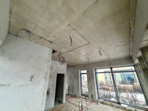 Качественная постройка: Дом построен из газоблока на монолитном плитном фундаменте. Высокие потолки 3 метра. Коммуникации: электричество, септик, скважина. Газ проходит по границе КП.