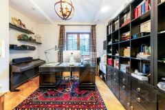 Внутреннее пространство вмещает просторную гостиную с камином, кабинет, 4 спальни и 5 санузлов.