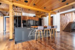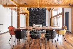 Мебель, оборудование: на кухне немецкий гарнитур SEGMLLER с островом и встроенной техникой марки Smeg и Gaggenau (варочная панель с интегрированной вытяжкой, духовой шкаф, холодильник с лёдогенератором, пароварка, посудомойка, кофемашина, подогреватель посуды техника напрямую подключена к водоснабжению), обеденный стол из карагача с "речкой" (пролив из цветной эпоксидной смолы, имитирующий русло реки). На летней кухне печь, облицованная немецким бесшовным кирпичом, с мангалом и казаном, кухонный гарнитур с мраморной столешницей. В спальнях немецкие спальные гарнитуры, современное трековое освещение с возможностью добавления света в разных зонах. В санузлах сантехника Villeroy & Boch, большие душевые кабины и ванны из мрамора.