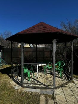 В доме 5 комнат и просторная терраса. На участке отдельно расположена кухня с душевой, туалет и хозпостройки. Так же на участке много плодовых деревьев и кустарников, теплица, а так же взрослые красивые туи. Садовые качели и беседка остаются в подарок.