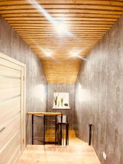 экстерьер выполнен из фибробетона на 5мм утеплителе из пеноплекса.