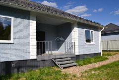 Одноэтажный дом 90 кв.м на свайно-ростверковом фундаменте 2022 года постройки. Стены сложены из теплоблоков, снаружи покрашены. Внутренние перегородки выполнены из гипсокартона. Пол и потолок утеплены. Крыша вентилируемая, покрыта металлочерепицей.