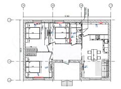 При входе в дом - уютная веранда. В доме имеется холл 10 кв.м, три изолированные комнаты 13,2 кв.м, 13,5 кв.м, 8,5 кв.м и просторная кухня-гостиная 22 кв.м, бойлерная 6 кв.м, совмещенный санузел 5,5 кв.м.