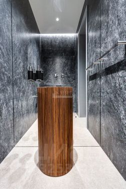 1й этаж: гараж на 3 м/м ( мойка и зарядка для электроавтомобилей ), гардеробная, гостевой с/у, гостиная с камином, кухня, рабочая кухня, кабинет, комната для хранения вещей, бассейн (с/у с душевыми, хаммам и сауна), блок для персонала, терраса;