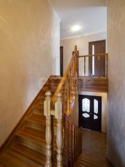 1 этаж: Просторный холл, гостевая спальня, гостиная, просторная кухня с выходом на террасу, большая уборная, выход в гараж, котельная с выходом на задний двор, подъем по двухмаршевой лестнице.