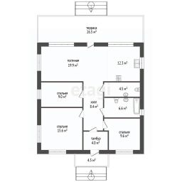 Большая терраса выходит во двор. Дом подходит для семейной и IT ипотеки. В доме три спальные комнаты, просторная кухня гостиная 32 кв. м., 2 с/у, терраса 26 кв. м.