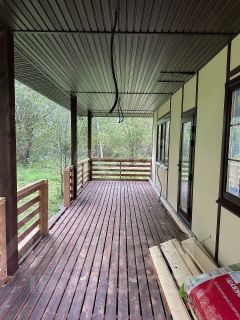 Отделка внутри, имитация бруса, натяжной потолок, электропроводка, водоотведение, железная дверь с термо разрывом, коричневые окна.