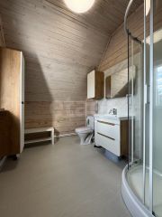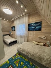 Планировка дома продумана до мелочей: на первом этаже просторная кухня-гостиная, где можно собираться всей семьей, а также техническое помещение и современный санузел. На втором этаже расположены уютная детская комната и светлая спальня, дополненные вторым санузлом с душевой.