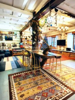 На первом этаже гостинная 67 м²., кухня 30 м². и технические помещения, на втором этаже 5