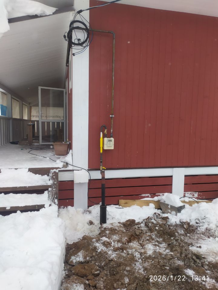 Общая строительная готовность 70%: теплый контур дома, мягкая кровля, окна-двери установлены, электричество в доме (мощность 15 КВт, три фазы), счетчик установлен, газ заведен в дом, газификация добавлена к цене. Газовое оборудование не установлено.