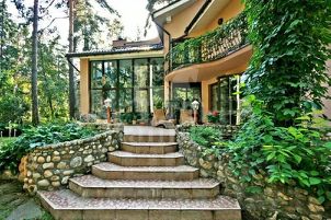 Участок 50 соток лесной, выполнен дорогой ландшафтный дизайн.