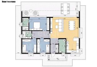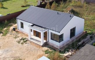 Стены выполнены из качественного пеноблока D500 с армированием, а крыша покрыта вентилируемой металлочерепицей. Фасад утеплен и отделан стильной фасадной штукатуркой, что придает дому современный вид. Вы можете завершить отделку по своему вкусу, создавая пространство, в котором будете чувствовать себя как дома.