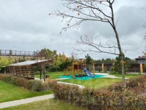 КОТТЕДЖНЫЙ ПОСЕЛОК. Уютный, экологически чистый. Есть детская площадка. Все коммуникации проходят под землей. Широкие улицы.