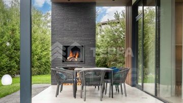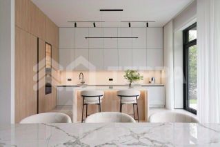 Новорижское шоссе, 31 км от МКАД. Александрово. Продается дом Дом, общей площадью 390 м.кв., расположен на участке в 11 сот. Все коммуникации - центральные. Гараж - Отсутствует. Планировка: 1 этаж: прихожая, гардеробная, холл, гостевой с/у, кухня-столовая, гостиная, гостевая спальня, выход на террасу, котельная, навес на 2 м/м.; 2 этаж: хозяйская спальня с ванной комнатой и гардеробной, спальян с с/у и гардеробной, 2 детских спальни, ванная комната. лот: 18598