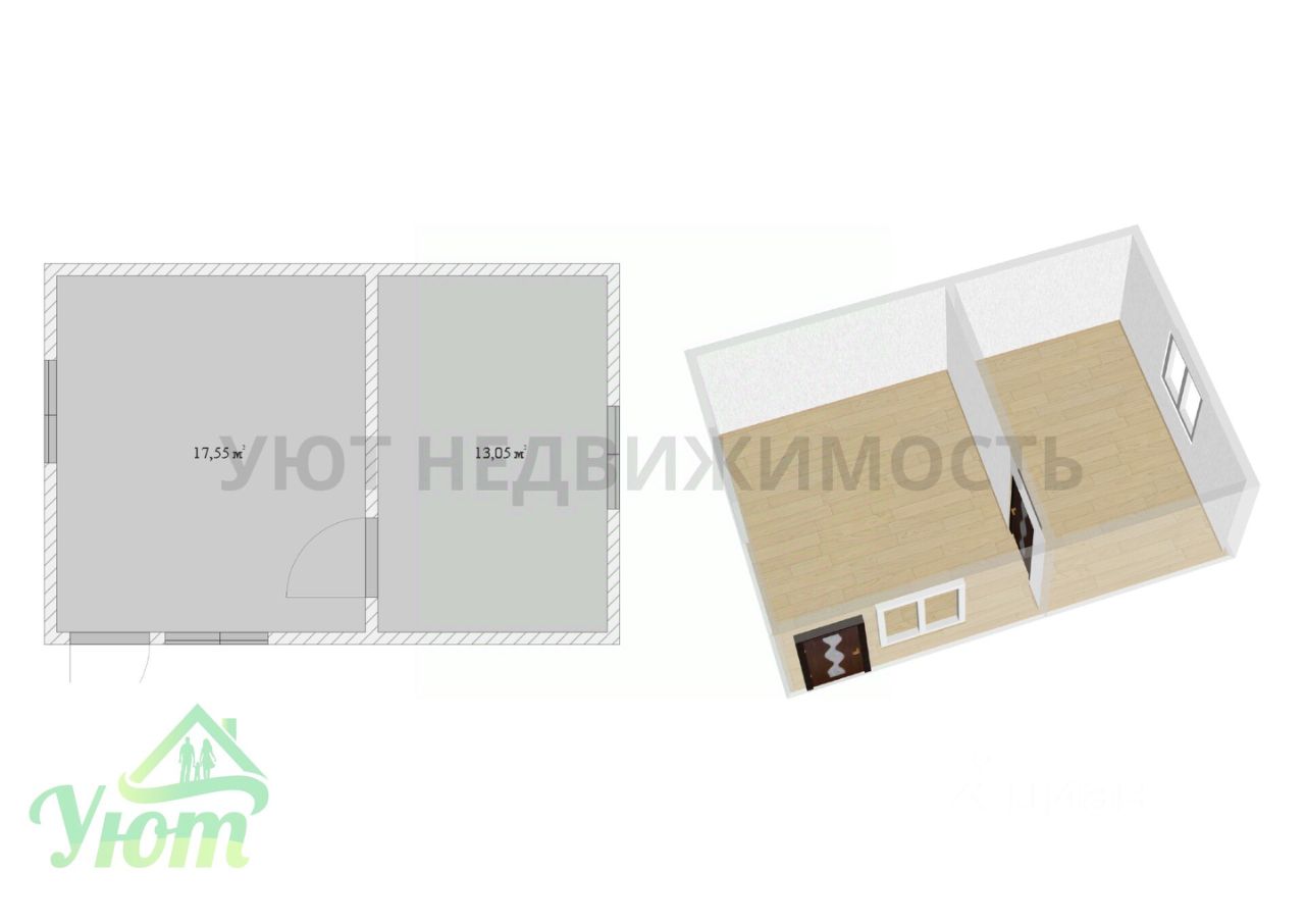 Дом - две комнаты - 17,5 м2 и 13,0 м2, не зарегистрирован.