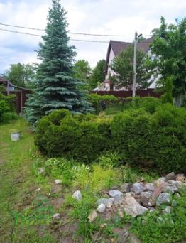 Для ландшафта имеются 3 голубые ели, 3 декоративные туи.