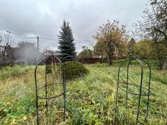 Насаждения: 3 яблони (Антоновка, Белый налив, Мельба), 2 сливы, черешня, смородина черная 7 кустов, крыжовник, малина вдоль забора. Все плодоносят.