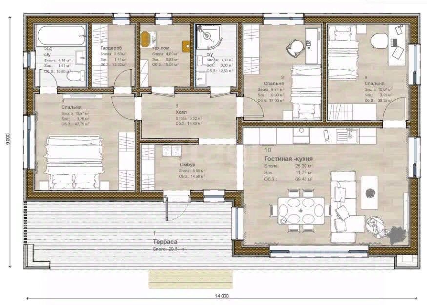 — террасы и панорамное остекление согласно проекту.