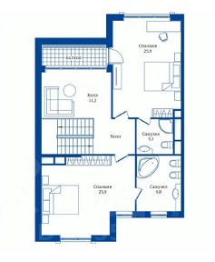 2-й этаж: 3 спальни, 2 с.у,
