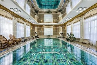 Дом под ключ" с мебелью предлагает 2 этажа и 6 комфортабельных спальных комнат. Здесь ждут вас уютная гостиная с камином, бассейн, кинозал, бильярдная и роскошная хозяйская спальня с собственным санузлом, гардеробной и выходом на террасу.