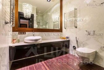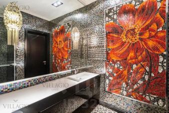 Для отделки были выбраны материалы класса Deluxe дерево ценных пород, натуральный камень. Стены и полы в санузлах выложены мозаичной плиткой.