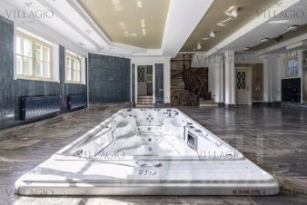 Идеальный вариант для большой семьи, обустроено 7 спален с приватными с/у, ванными и гардеробными комнатами. Для отдыха есть СПА-зона с бассейном, сауной, хаммамом, спортивным залом и комнатой отдыха. Для комфортного передвижения между этажами установлен лифт.